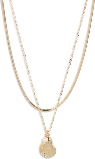 Bring the beach with you in this 14-karat gold-plated set of necklaces featuring an oyster shell charm and a freshwater pearl.