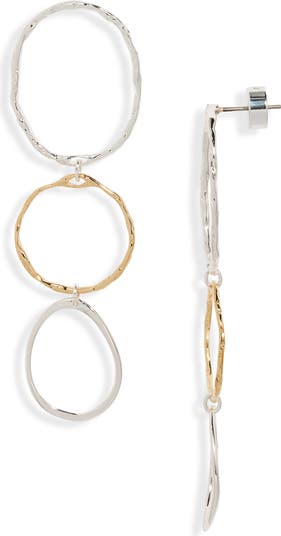 Sterling silver plating alternated with 14-karat-gold plating to refine the finish and bring versatile shine to these molten drop earrings.