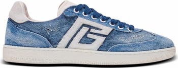 Balmain Swan trainers in distressed denim Multi-material design in distressed denim and textured mesh Textured lace fastening Diamond-embossed leather tongue with PB logo PB logo inserts in textured mesh on the sides Textured mesh insert at the back Textured rubber outsole with raised Balmain logo Leather lining Contrasting leather insole Main material: 52% polyester 48% cotton Made in Italy Item: EM1VI360TRID