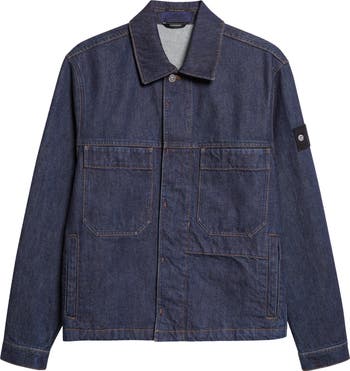 This boxy coach's jacket is constructed from 13 1/2-ounce denim woven in a 4-thread twill weave and finished with a light rinse for a deep indigo hue. The chest pockets close with hidden snaps, and a signature Stone Island Denim Research Badge is mounted at the left shoulder.