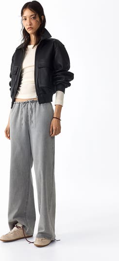 Loose-fit pants in lightweight denim made from a cotton and lyocell blend. High waist, drawstring and covered elastic at waistband, and discreet side pockets. Straight legs.