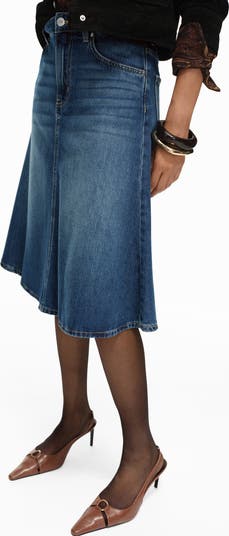 A perfectly faded wash enhances the casual feel of this wardrobe-staple midi skirt cut from soft cotton-blend denim.