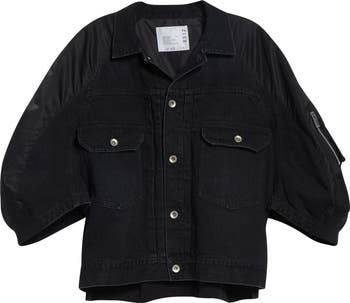 Chitose Abe's fascination with artfully mismatched aesthetics shines through the mixed-media construction of this hybrid jacket designed with an indigo-dyed denim front contrasted by puffer-inspired nylon back paneling.