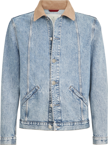 Denim outerwear jacket with suede collar