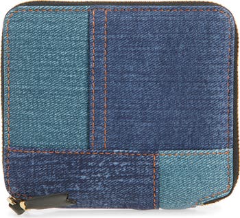 A trompe l'oeil patchwork of denim-print lambskin leather, inspired by the pocket on your favorite jeans, gives this compact zip-around wallet a retro aesthetic.