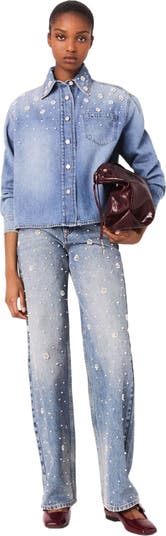 For weddings, summer parties or white parties: the studio unveils an elegant and versatile wardrobe, as glamorous as it is casual, to celebrate your most special days. Beaded and rhinestone flowers give this denim shirt a touch of sparkle and sophistication. A chest pocket, button fastening and buttoned cuffs structure this casual piece. Team with matching shorts, wedge sandals and a bag.
