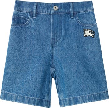 A pair of shorts in denim, washed for a soft finish. The five-pocket style features an embroidered Equestrian Knight Design badge and is elasticated at the back for a more comfortable fit.||Age 3: button closure|Ages 4-14: button and zip closure |Appliquéd Equestrian Knight Design at front