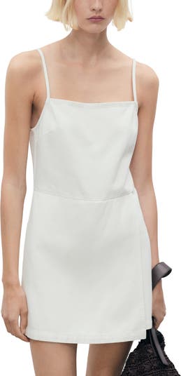 Keep it cute and modern in this chic skort romper that's ready for some fun in the sun in dark-wash nonstretch denim.