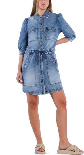Puff sleeves sweeten a staple dress crafted in stretch-kissed cotton and offered with plenty of pocket space,