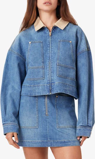A contrast collar draws the eyes to this faded trucker jacket that's cut from low-stretch denim in a relaxed fit.