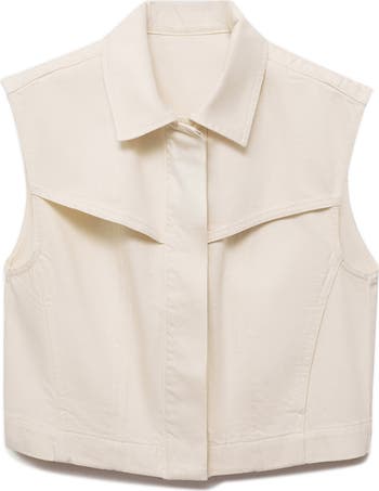 Layer up your look with the modern sophistication of this nonstretch-denim vest complete with a hidden-button placket.