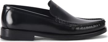 Glossy and smart, this loafer crafted from premium leather features a covered moc toe and a simple vamp adorned only with gilded logo details. Pair it with your casual wardrobe's more polished pieces to bring a timeless finish to any favorite look.