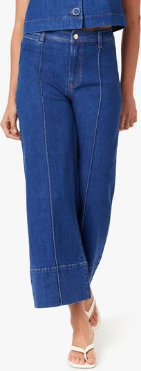 Pintuck pleats down the front accentuate the wide-leg silhouette of these perfectly cropped jeans in a versatile medium wash.