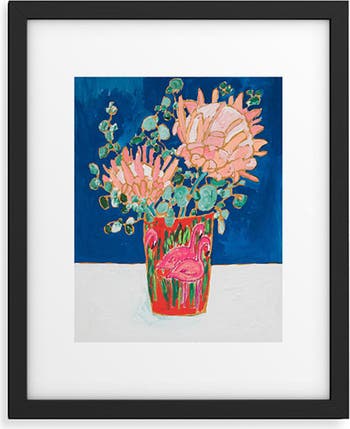 Protea in Enamel Flamingo Tumbler Framed Art Print