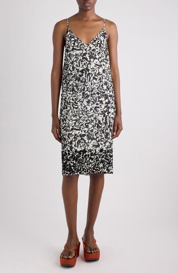 Van Noten successor Julian Klausner spotlights the Belgian brand's bold pattern play with this silky slipdress, where scores of light-catching sequins and beads are layered over a hypnotic squiggle print for an eye-tricking optical illusion.