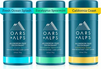 Our deodorant pack comes with three of our all-time best-selling scents. Stash one in your bathroom, bag, and at work! Our powerful aluminum-free deodorant collection uses cornstarch to absorb sweat while botanicals nourish the skin and fight body odor. - Fresh Ocean Splash Scent: Notes of Cedarwood, Lime, and Fresh Greens come together with crisp water notes to leave you smelling cool and sophisticated. - Eucalyptus Spearmint Scent: Sweet spearmint enriched with citrus and cedar will leave you smelling naturally clean and as relaxed as a spa sauna session. - California Coast Scent: This light citrus scent will take you to sunny days in the sand. Dark tones of patchouli, ylang ylang and sandy amber mixed with citrus notes leave you feeling fresh and confident.
