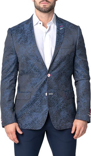 Tonal geometries subtly detail a sport coat tailored in a physique-hugging fit with pops of colorful embroidery and a pull-out pocket square at the chest. It's crafted with a convenient pocket to keep your smartphone stowed and easy to access when you need it.