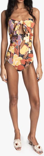 Make a statement at the pool or beach in the Anna Sui Desert Bloom Swimsuit. This flattering one-piece features a keyhole cutout with a tie detail at the bust, adding a hint of playful sophistication. Soft ruching enhances the silhouette for a smooth, feminine fit, while the stretchy spandex fabrication offers comfort and ease of movement. Designed for both lounging and swimming, this swimsuit blends signature Anna Sui artistry with effortless, wearable style. Style it with the Desert Bloom Sarong for a perfectly coordinated look.