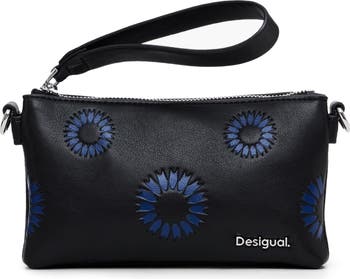Floral debossing brings textural intrigue to a faux-leather bag fitted with removable wrist and crossbody straps perfect for on-the-go styling.