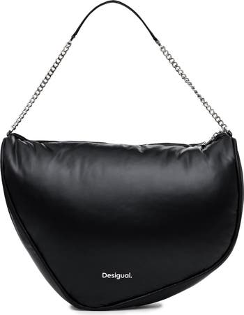 Pillowy faux leather pairs nicely with the asymmetric, lemon-inspired silhouette of a spacious bag equipped with multiple carrying options.