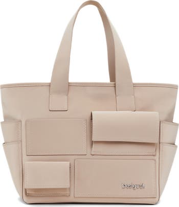 Keep virtually every essential handy with this faux-leather shopper plastered with exterior pockets of all shapes, sizes and ways to secure your frequently needed necessities.