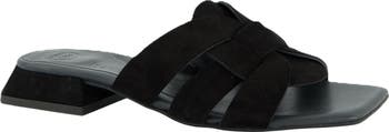 A low heel, strappy leather upper and squared toe bring modern charm to a slide sandal that's sure to be at the top of your warm-weather rotation.