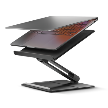 Relieves neck and shoulder pain Adjustable height up to 60cm Base tray for small essentials Modern metal finish with fabric cushioning