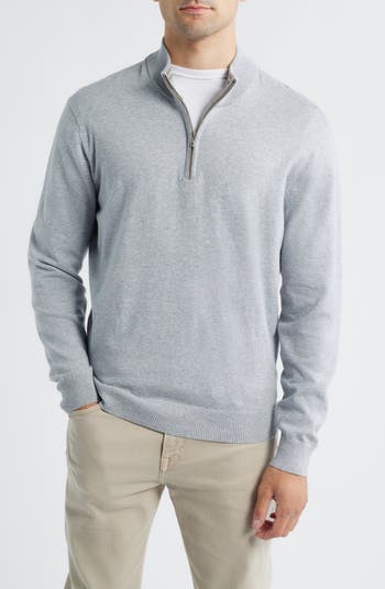 Lightweight and layerable, this cotton-blend sweater enhanced with a luxe touch of silk sports a high collar for added coverage and a deep zipper for an adjustable fit.