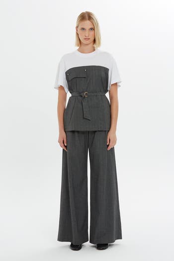 Detachable Belt Chest Cutout Side Slit Short-Sleeve White Blouse