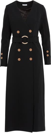 Perfect for fall and winter, this midi-length, straight-cut piece features a V-neck, long sleeves, and a buttoned closure. It comes without pockets and offers a standard fit. Fully lined for added comfort, it measures 50" cm in length.