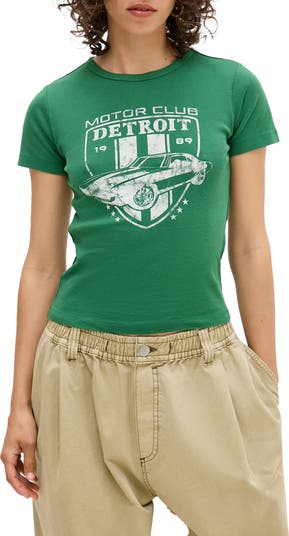 Show your love for the Motor City with this cotton baby tee stamped with vintage-inspired graphics.
