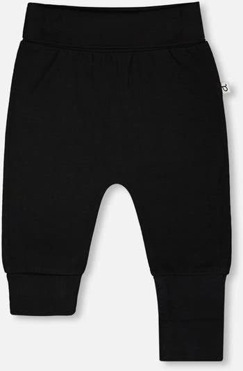 With their playful modern cut, the organic cotton jersey evolutive pants in black bring both charm and comfort to little boys’ wardrobes. These stretchy pants are designed with folded cuffs and foldover waistband, so they grow right along with your child. Soft organic cotton jersey ensures easy wear, while its solid black color adds a subtle touch of class from our "Under The Baobab" collection.