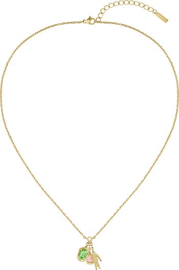 A signature crocodile charm and facted crystal accents bring playful charm to a delicate chain necklace plated in a goldtone finish.