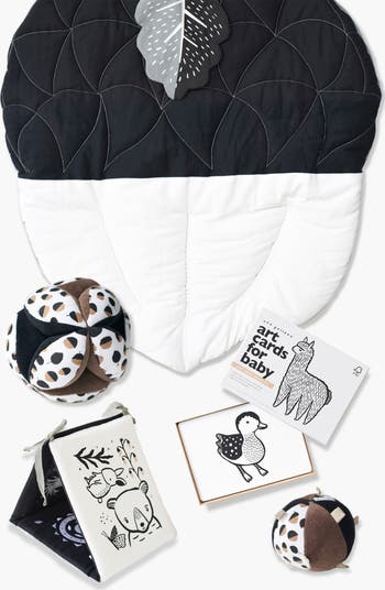 The Acorn Adventure Bundle is a thoughtfully curated collection designed to make tummy time and early play full of discovery and delight. Featuring five of Wee Gallery’s most beloved sensory toys, this set encourages baby’s development through high-contrast visuals, engaging textures, and gentle sounds—crafted from safe, organic materials. The Acorn Quilted Playmat provides a cozy, generously sized surface with quilted details and sensory textures, while the Acorn Taggy Ball invites grasping with tactile fabrics and a soft rattle. The Acorn Clutch Ball, inspired by Montessori educators, supports early motor skills with its segmented design that’s easy for tiny hands to explore. For visual stimulation, the Tummy Time Gallery and Baby Animals Art Cards introduce bold graphics, woodland themes, and interactive play options that adapt to baby’s milestones. Ethically made and beautifully designed, this bundle blends early learning with timeless charm, making it an ideal gift for baby showers, newborns, or growing little explorers.