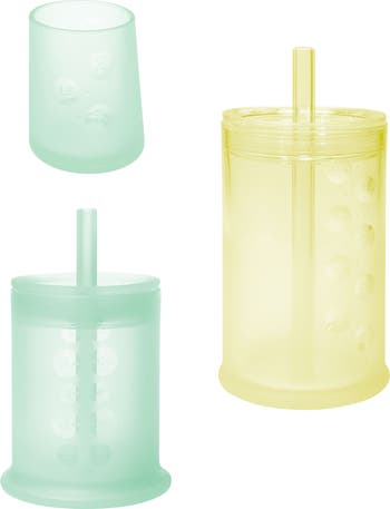 Nourish your little one's tummy and budding independence as they transition from straw suction to open-top drinking with this set of flexible silicone cups. A weighted base enhances stability to reduce spills, making mealtimes a breeze to clean up.