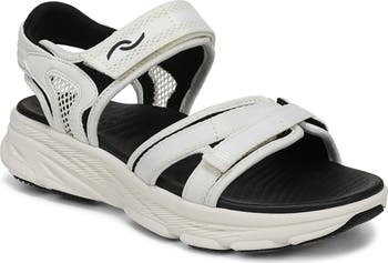 This strappy sandal is engineered with the brand's Q angle construction designed to align with your quadriceps and built with a narrower heel and roomier toe for balanced support.
