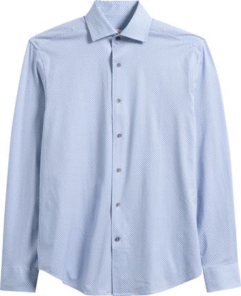 A subtle diamond print styles this work-to-weekend shirt cut from breathable, eight-way OoohCotton that resists wrinkles to keep you looking polished and feeling comfortable. The smooth, double-mercerized knit fabric offers quick-drying, moisture-wicking comfort while helping to regulate your body temperature.