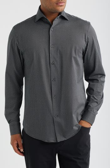 A refined print enlivens a sport shirt tailored from breathable, wrinkle-resistant OoohCotton with a smart spread collar and cuffs you can button or fasten with your own cuff links. The smooth, double-mercerized knit fabric dries quickly for moisture-managing softness and consistent body temperature.