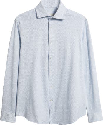A paisley print styles a smart sport shirt cut from smooth, stretchy, wrinkle-resistant OoohCotton fabric designed to wick moisture, dry quickly and keep you comfortable all day. Genuine mother-of-pearl buttons enhance this polished look, while the curved hem looks great tucked or untucked.