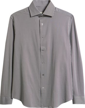 Bugatchi Devon OoohCotton<sup>®</sup> Stripe Long Sleeve Button-Up Shirt, Main, color, Black