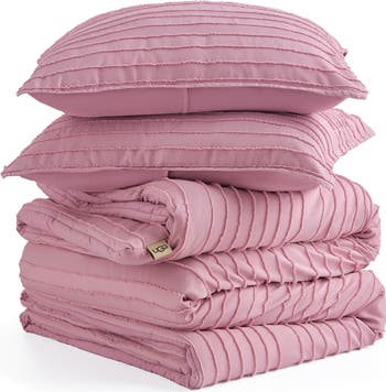 Bring luxurious comfort to your bedroom with a soft bedding set featuring a lightly insulated comforter and two pillow shams made from breathable fabric.