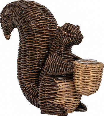 Add a charming touch to your holiday table with this intricately handwoven squirrel that hides a glass insert allowing you to display flowers or serve treats in rustic style.