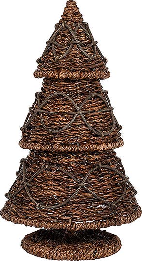 Add rustic texture and dimension to your holiday decor with this handwoven-rattan tree that brings a touch of forest magic into your home.