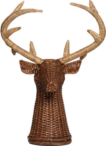 Bring natural drama and delight into your home with this stately stag vase handmade from beautifully woven abaca, wicker and rattan. A clear glass sits center of this vase to easily arrange any bouquet.