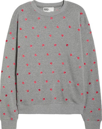 Sweet embroidered hearts bring Valentine vibes to this heathery and slouchy cotton-blend sweatshirt.