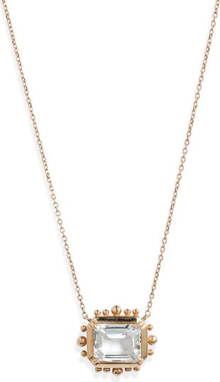 A stunning Asscher-cut white topaz is surrounded by hand-polished beads and suspended from a delicate chain on this vintage-style 14-karat-gold necklace.