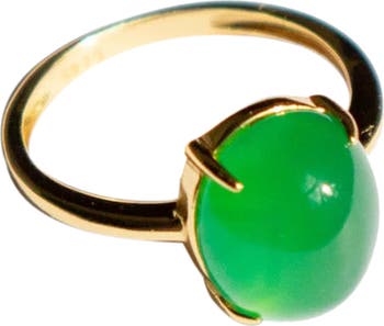 This Dew ring is a stunning combination of modern and classic design. The gold-plated skinny ring band is delicately set with an oval-shaped green quartzite centerpiece, creating an elegant, timeless style. Named after "dew" due to its shape, this ring is a luxurious addition to your collection.