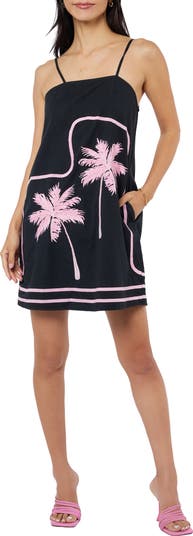 Embroidered foliage brings a tropical vibe to this swingy sleeveless dress made from cotton.