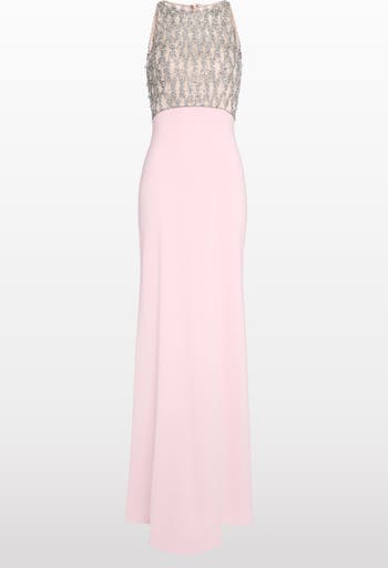 Sleek sophistication meets intricate embellishment in Dewdrop, a striking gown designed for modern elegance. This full-length dress features an embellished bodice, adorned with intricate crystal embroidery that forms a delicate, mesh-like effect across the upper body. The high neckline and racer-style cut lend a contemporary, athletic-inspired edge, offering structure and contrast to the soft sparkle. Below, the skirt flows in a smooth, uninterrupted column, creating a clean, minimalist silhouette that balances the ornate detailing above. The thoughtful juxtaposition of textures makes this gown a standout option for evening events that call for originality and poise. Ideal for modern weddings, art gallery openings, or fashion-forward black-tie affairs, Dewdrop captures attention without overwhelming. Whether styled with sleek hair and bold earrings or kept minimalist with understated heels, this gown delivers sharp glamour for those with an eye for detail.