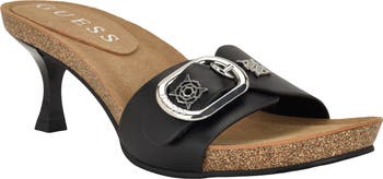 A just-right heel adds a contemporary-chic flourish to this must-have sandal topped with polished signature hardware.
